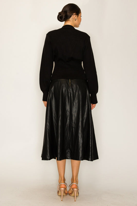 V-Neck Cardigan Sweater with Gold Accent (Black)
